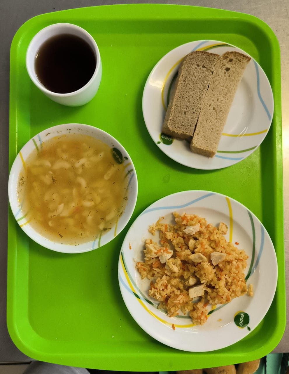 Школьная столовая оборудована современной техникой. Имеются мясорубки, соковыжималки, посудомоечные машины. Просторный светлый столовый зал рассчитан на 220 посадочных мест. За каждым ребенком закреплено место за шестиместным обеденным столом.